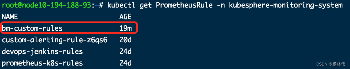 kubectl get PrometheusRule -n 命名空间