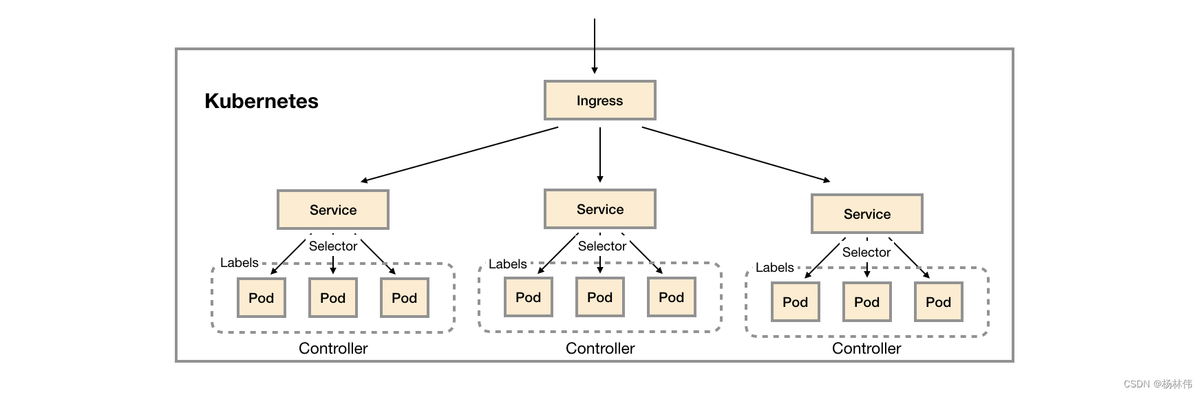 解决方式:如上图,Kubernetes中定义了单独的资源Ingress(入口)。