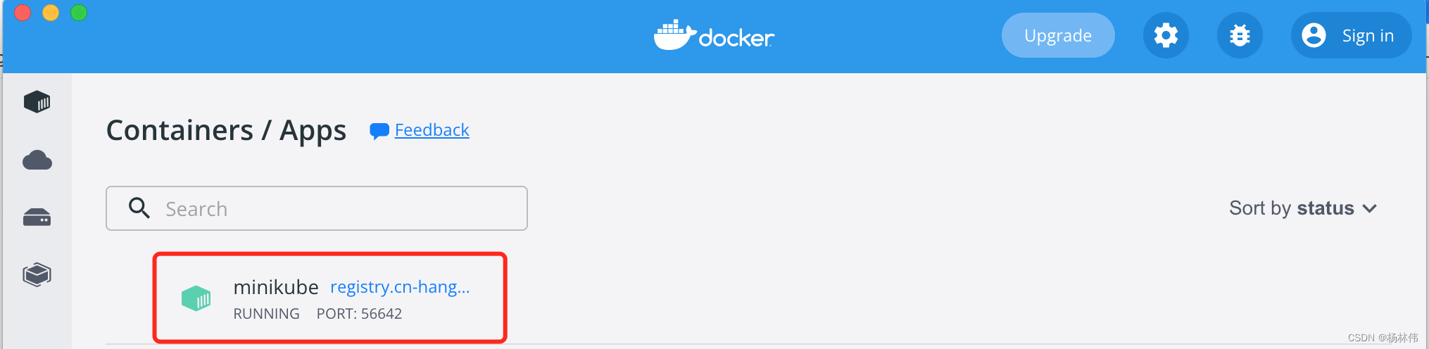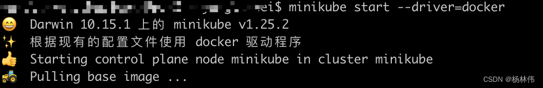 因为mac上已经安装了docker desktop,所以不需要额外再安装Virtualbox,直接选择Docker驱动,使用如下命令启动: