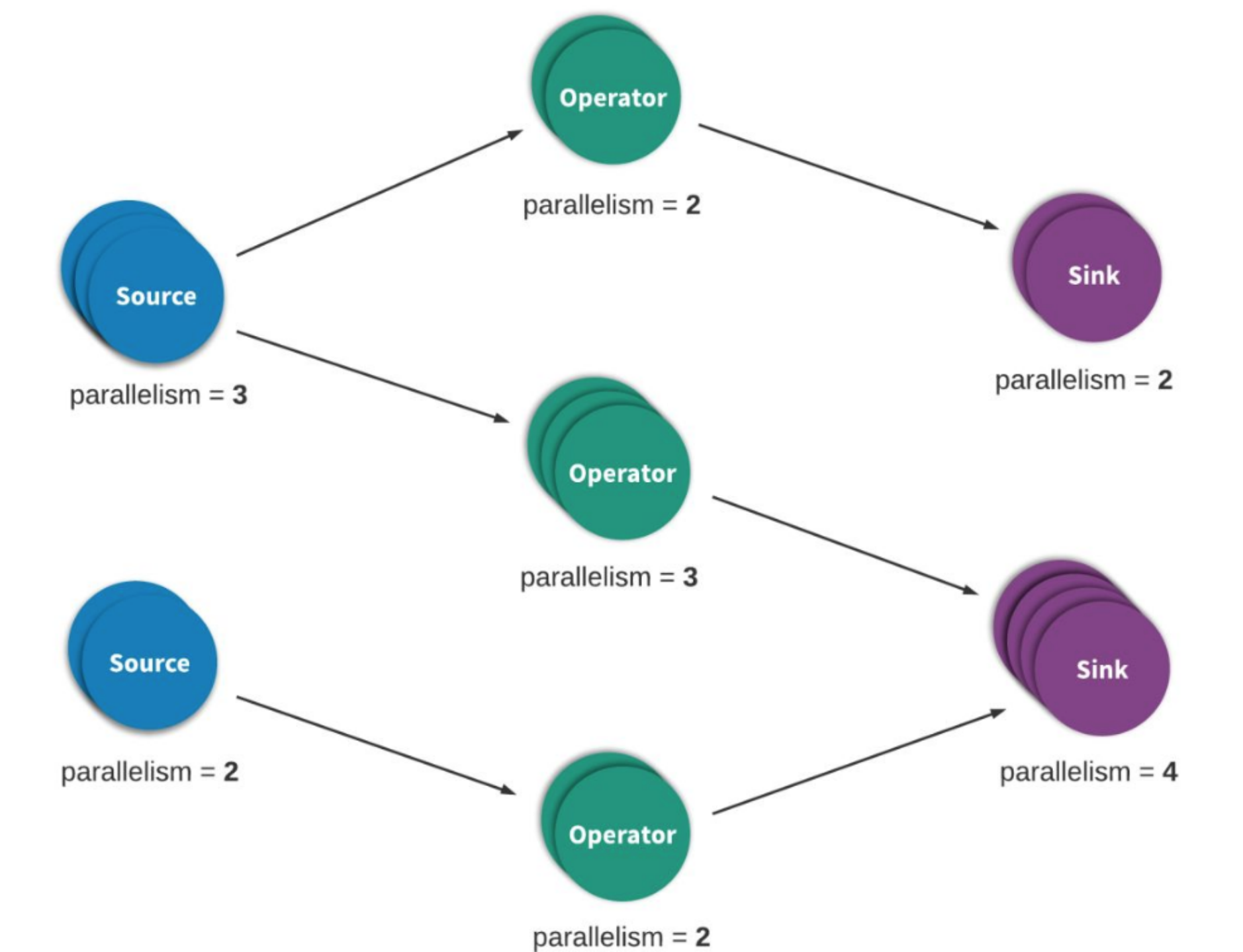 分布式情况下是由多个Source(读取数据)节点、多个Operator(数据处理)节点、多个Sink(输出)节点构成