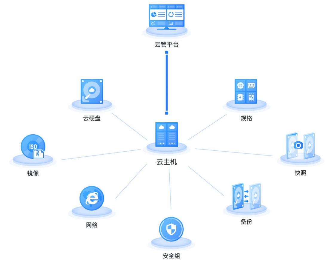 用户可以通过云管平台配置云主机的各项功能,包括规格、存储、镜像、快照、备份和安全组等。