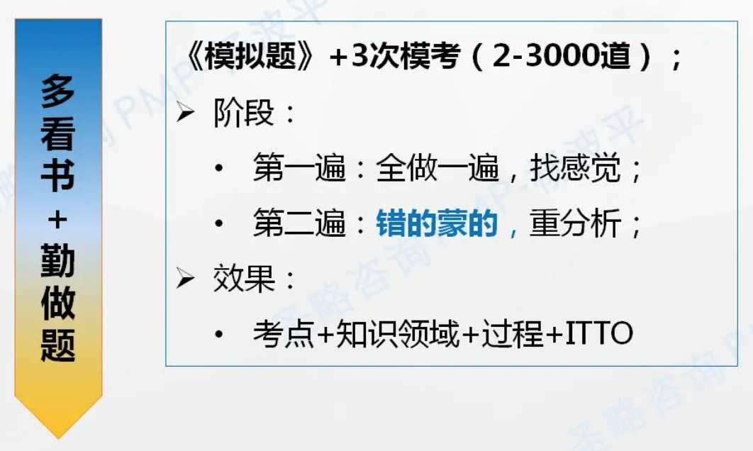 注意错的和蒙的,蒙的可以收藏或者不做 离不开考点+知识领域+过程+ITTO
