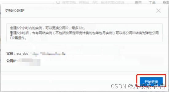 服务器停机好后,点右侧的更多-》网络和安全组-》更换公网IP,然后点击开始更换
