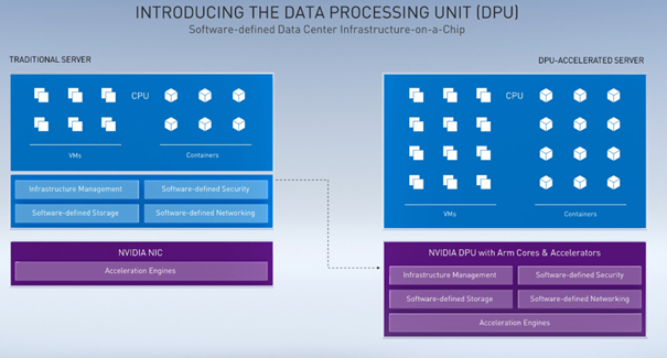 英伟达的黄仁勋曾表示,在虚拟化和微服务等技术的推动下,数据中心CPU要处理的任务越来越多,在每年出货的大约3000万台服务器中,有三分之一用来运行数据中心的软件定义的网络堆栈,他认为必须将这部分工作负载卸载掉。