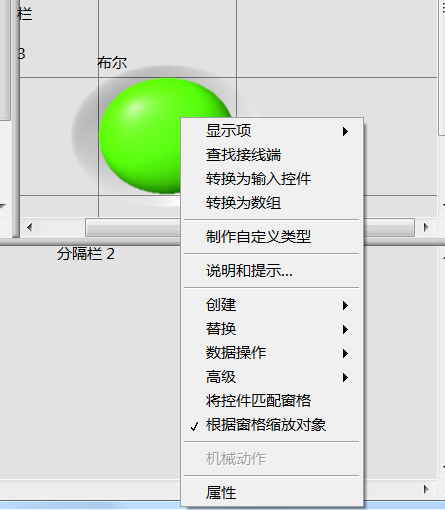 - 显示项-为前面板的窗格添加标签。默认情况下,LabVIEW隐藏窗格标签。(注意,点击滚动条会出现所属窗格的配置选项,如果点击的是分割栏,那么要在选项里选择左窗格和右窗格,这样才会进入对应的窗格菜单,窗格菜单和分隔栏菜单有一些相似)