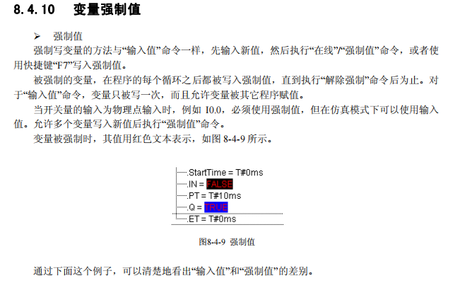 八、 预备设定为false之后(前面的第三项),点击在线-强制值,那么这个触点变为false