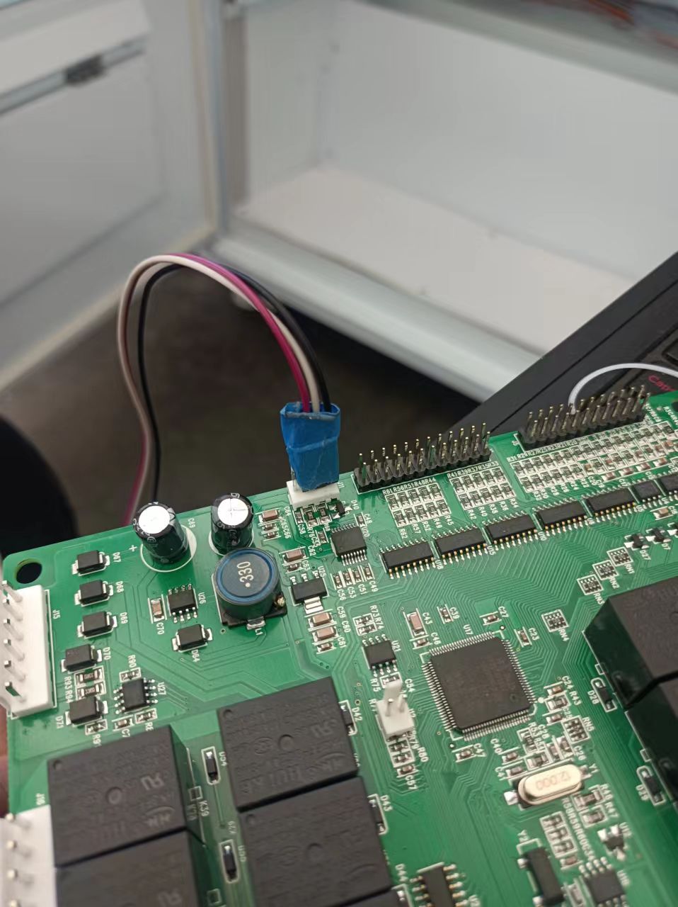 这里的下载plc程序的方式是用的rs232来下载,板子上有一个4p的直插针座子,这里就是下载口,不是常见的网口。