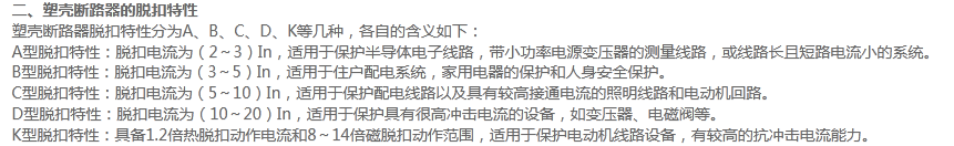 3)塑壳式断路器过电流脱扣器种类多,不可一概而论。