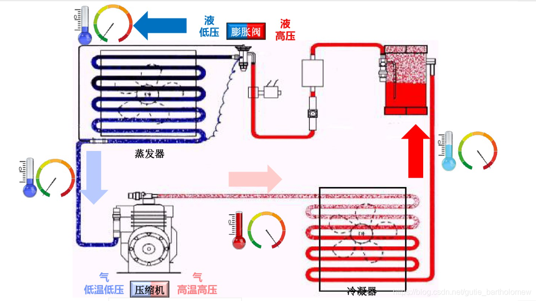 蒸发器:(蒸发吸热)