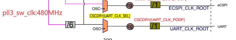 设置 UART 的时钟源为 pll3_80m,设置寄存器 CCM_CSCDR1 的 UART_CLK_SEL 位为 0 即可