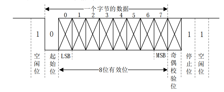 停止位:数据传输完成标志位,停止位的位数可以选择 1 位、 1.5 位或 2 位高电平,一般都 选择 1 位停止位