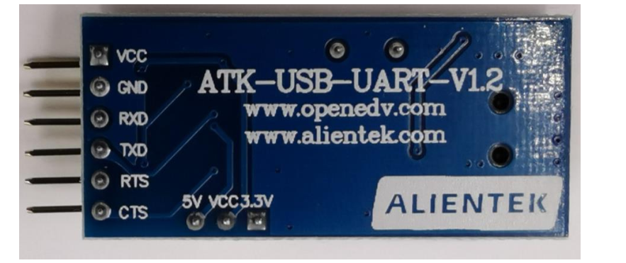 TTL 接口部分有 VCC、 GND、 RXD、 TXD、RTS 和 CTS。 RTS 和 CTS 基本用不到,使用的时候通过杜邦线和其他模块的 TTL 接口相连即可