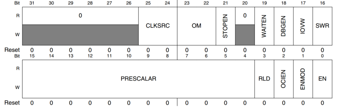 CLKSRC(bit25:24): EPIT 时钟源选择位,设置为 1,选择 ipg_clk(66MHZ)作为时钟源