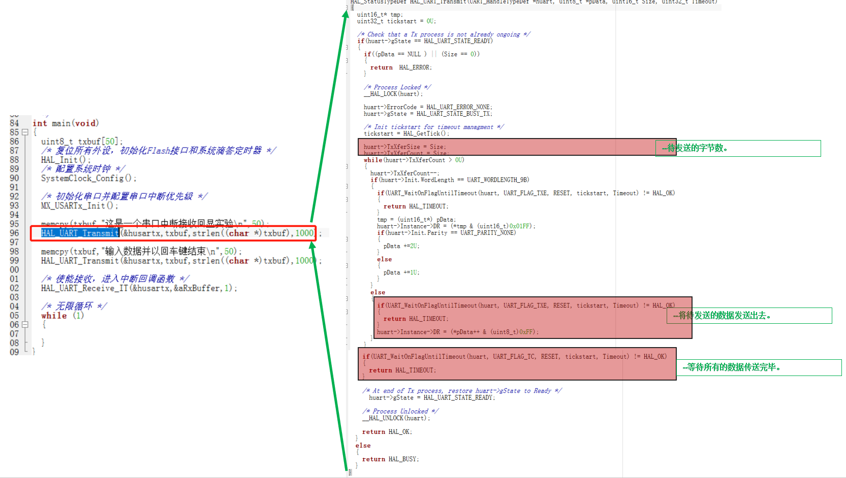 huart:串口句柄 pData : 发送数据的地址 Size :发送数据的大小 Timeout :超时时间