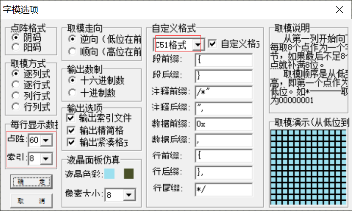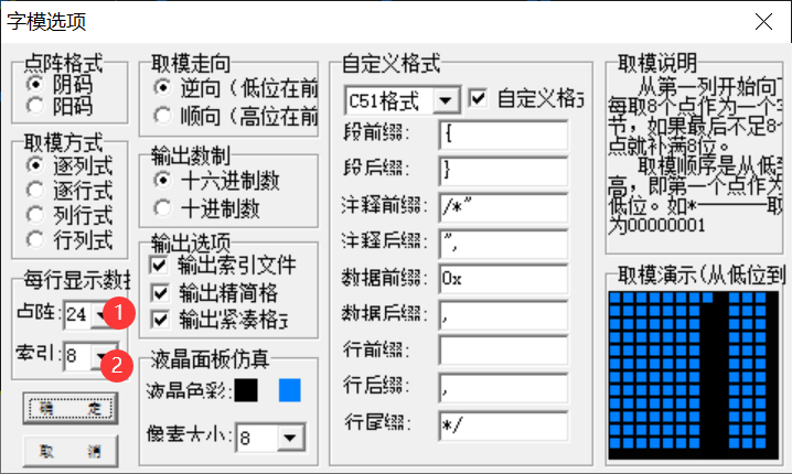 (3)字体设置 这里的字宽和字高一般和显示字符里面的大小一致