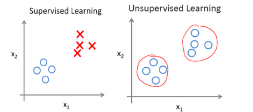 因为我们没有提前告知算法一些信息,比如,这是第一类的人,那些是第二类的人,还有第三类…我们只知道有一堆数据,不知道数据里面有什么,也不知道谁是什么类型,甚至不知道人们有哪些不同的类型,这些类 型又是什么