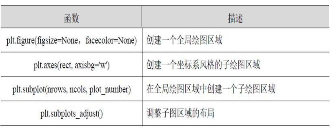 这些函数采用plt.< b > ()形式调用, 其中< b > 是具体函数名称。如:plt.figure; plt.axis; plt.subplot; plt.legend; plt.plot; plt. xlable