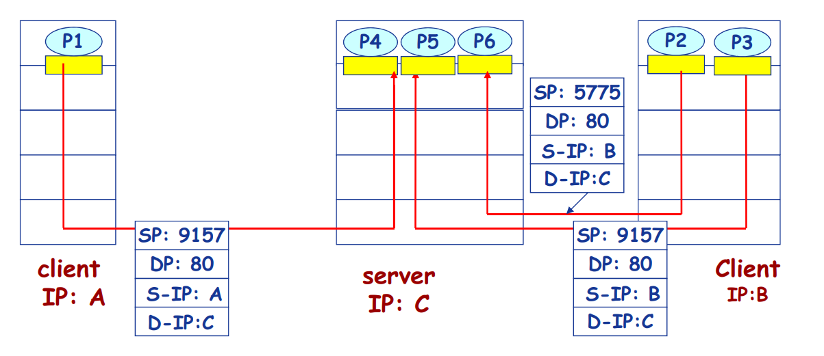 4.来自不同源IP地址和/或源端口号的IP数据包被导向同一个Socket