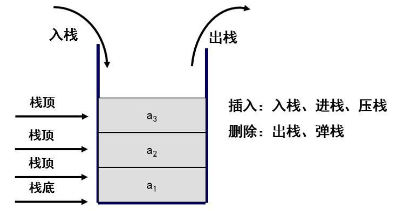 栈一般有栈底和栈顶,stack是限定仅在表尾进行插入和删除操作的线性表,允许插入和删除的一端称为栈顶,另一端称为栈底