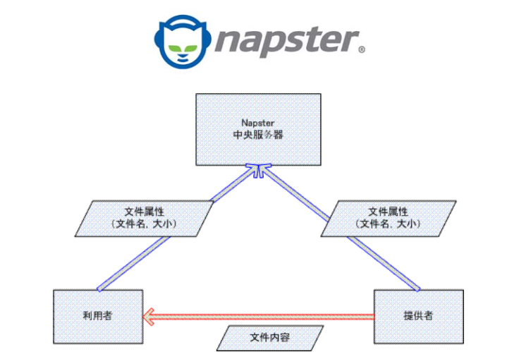 Napster就是采用的这种结构 (1)文件传输使用P2P结构