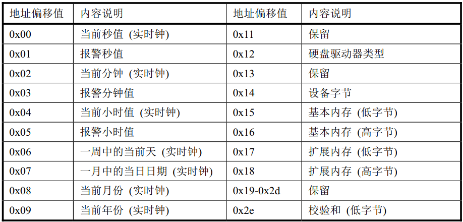 PC机的CMOS内存大小为128或者64字节内存块,是系统实时时钟芯片RTC的一部分,保存时间和日期信息,存放的格式是BCD码