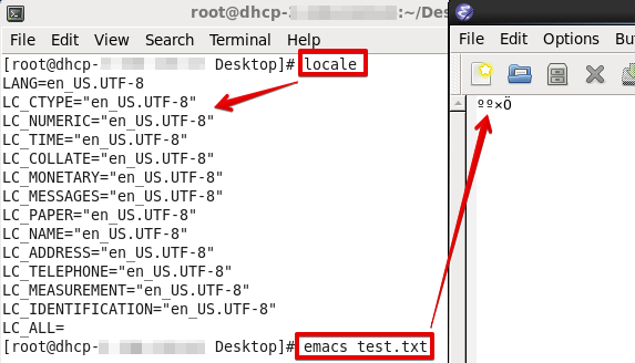 将前述内容为“汉字”的文件test.txt拷贝至Linux下,用Emacs打开: