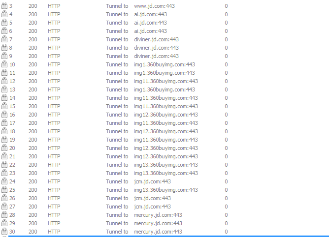 但是Fiddler随便闹情绪,所有的请求返回“Tunnel to……443”,如图所所示: