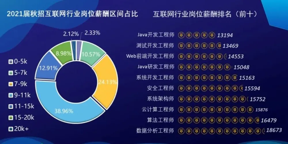 可见,互联网行业依然是吸金能力超强的行业,IT行业的小伙伴们也是整体段位较高的打工人。