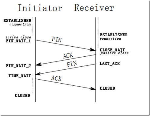 A:”我知道了(ACK)。”A->TIME_WAIT | B->CLOSED