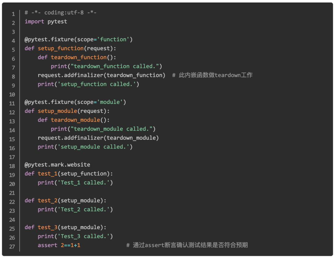 备注:也可以通过在fixture函数中通过yield实现setup和teardown功能