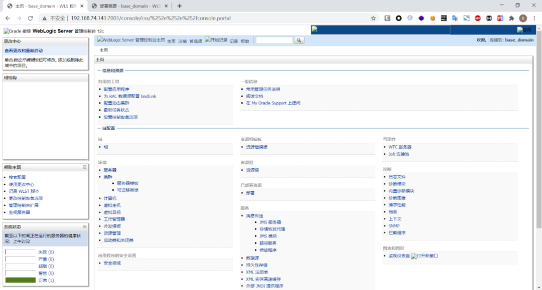 从上一步结果发现是存在管理控制台的,在正常访问console后台时会让我们输入账号密码。通过未授权访问,则可以直接绕过验证登录后台,漏洞