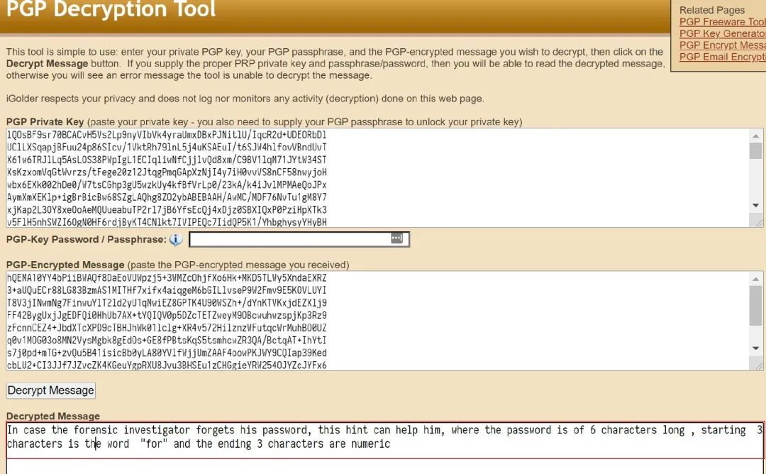 我们把PGP私钥和消息粘贴进去,解密出来是一个提示: