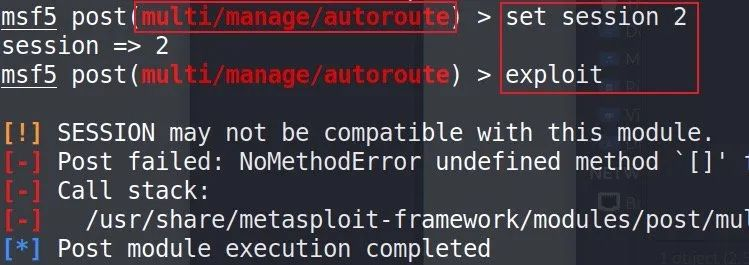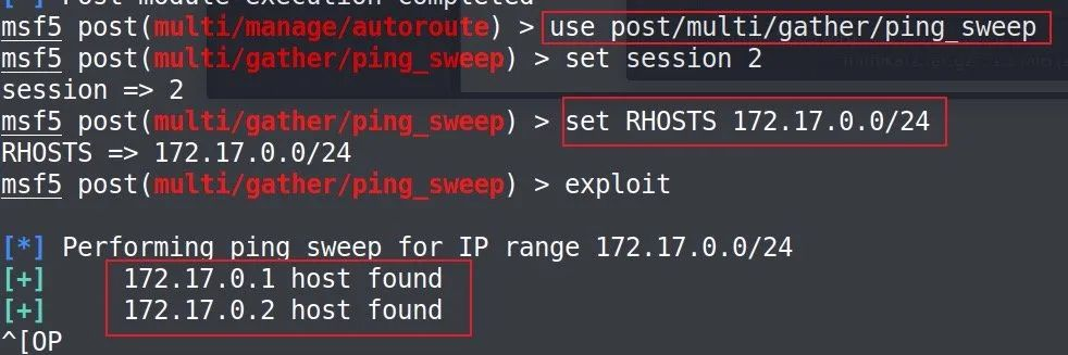 我们利用msf后渗透模块的路由添加功能,添加网络路由,然后对目标网络进行扫描