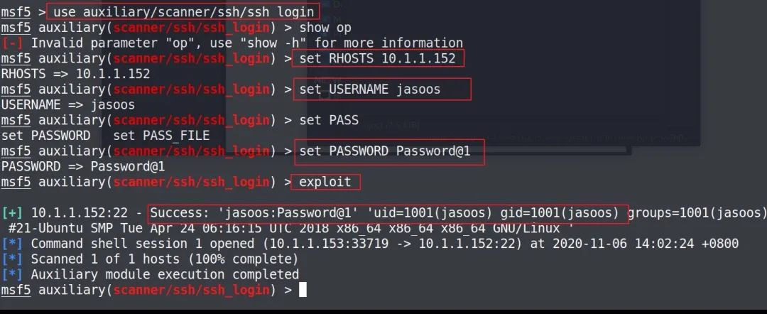 试一试吧,为了方便后渗透,这里我们使用msf里面的ssh_login模块