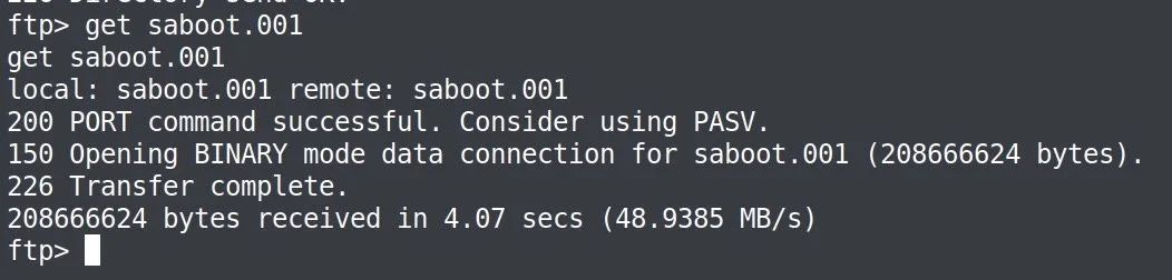 里面有一个pub目录,目录中有一个saboot.001的文件,我们把它下载下来