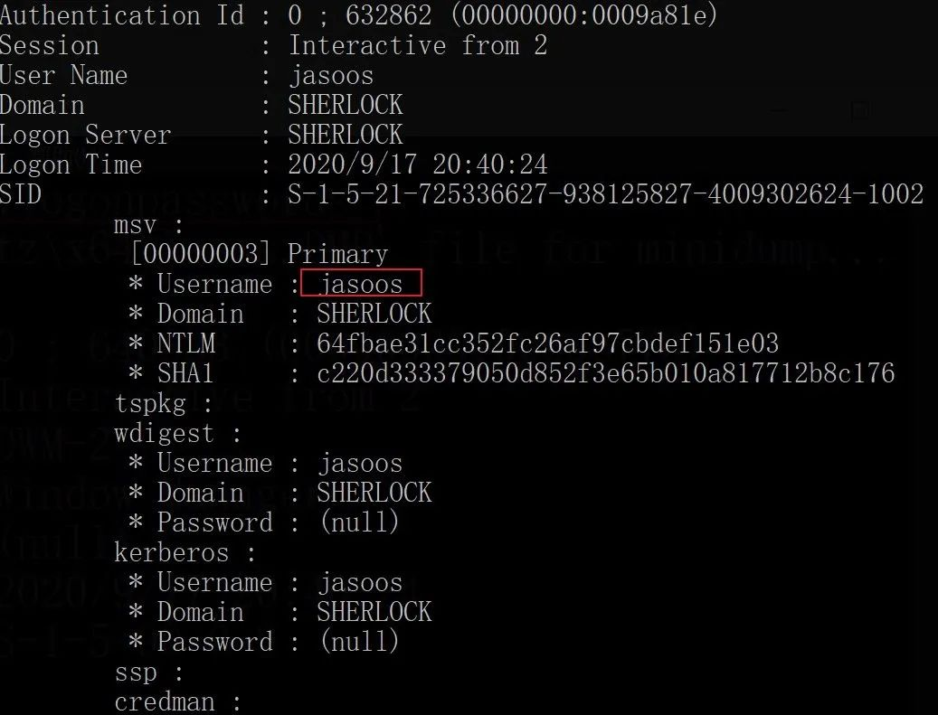可以发现有两个用户,一个是jasoos,一个是raj,mimikatz没有直接读取出密码明文,我们可以试试破解NT Hash,用John the Ripper 工具试试