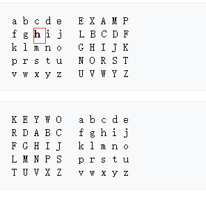 选两个密钥,example和keyword。去掉重复的字母。就是example变成exampl。余下的字母顺序存入矩阵即可