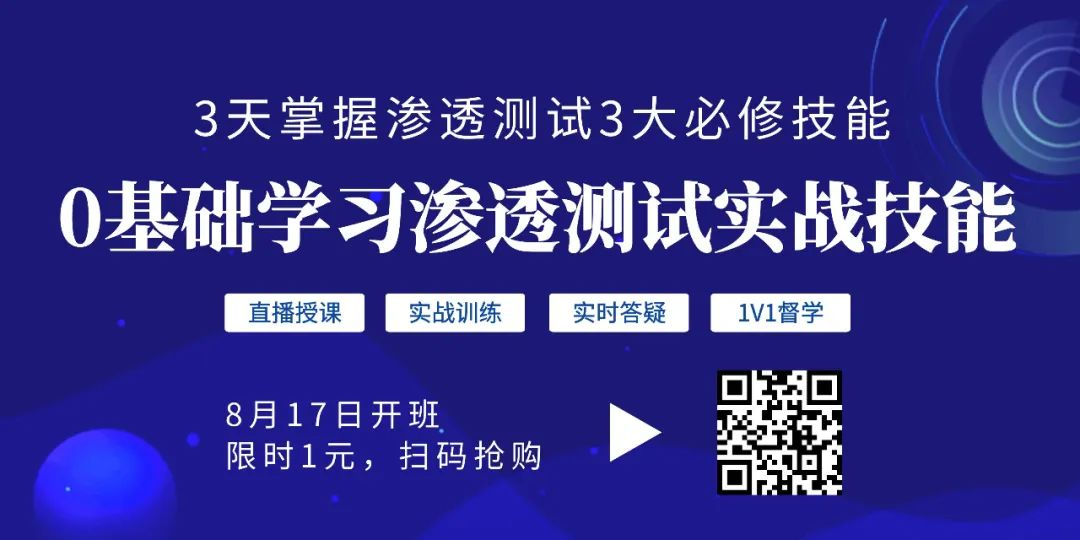 0-2岁渗透测试人员 3 天提升核心技能 原价198元,限时福利仅需1元!(最后2天) 你就可以收获 1 套系统学习路径 +掌握3个核心技能+ 3个配套实操训练+7天高质量社群服务 + 专业老师答疑 + 1V1督学