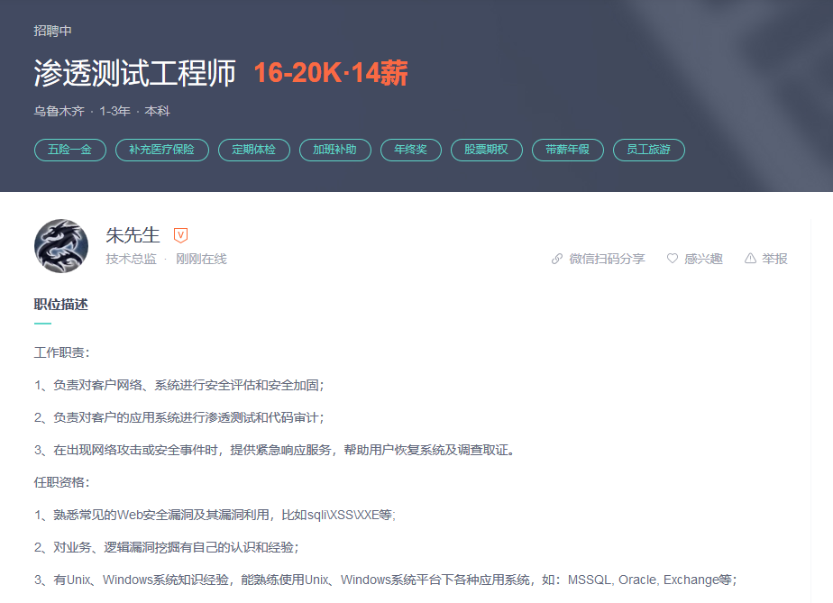 看招聘网站,我们会发现:一般 1 - 3 年经验的渗透测试工程师基本月薪都在 15 - 25K 不等,在职场新人中绝对属于“ 高薪一族” 了。