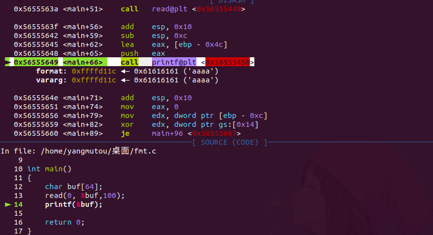 //gcc -g -m32 -fno-stack-protector -no-pie -o fmt fmt.c 为了调试方便,关闭canary 和pie 保护