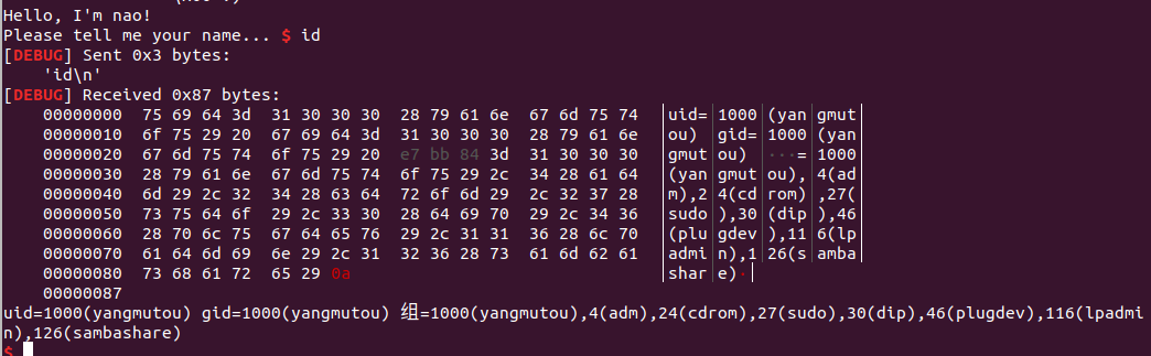其中 exp 中 %hn 是以 两字节 写入。这里 之所以 payload 最开始 会 对 +18 感到 疑惑,其实 这是 因为 sprintf(&s, "Nice to meet you, %s :)\n", &v5); //格式化字符串漏洞 首先 会输出 18 字节的 格式化字符串。