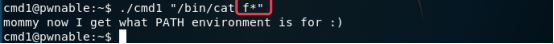 cmd2@ubuntu:~$ ./cmd2 "command -p cat f*"