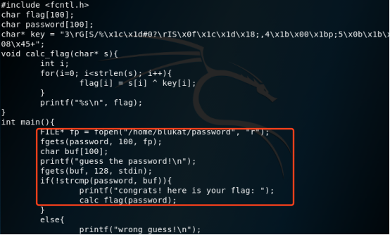 从password文件读内容,与我们输入的字符相比,通过比较则打印flag