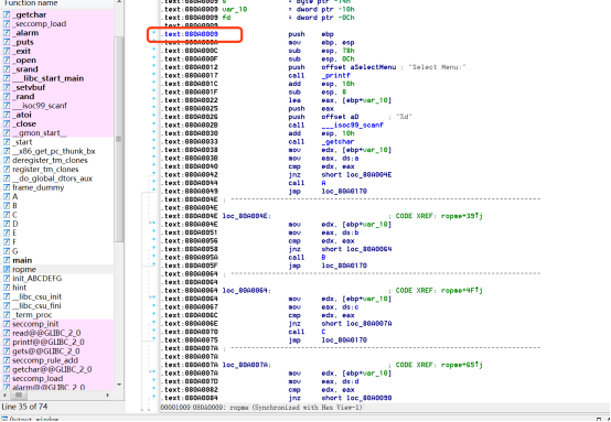 3. 最后要跳转到ropme(),这里要注意,不能直接凭借ropme的地址,因为该地址如下图所示含有\x0a,会被截断,所以要通过拼接main中调用ropme()时的地址