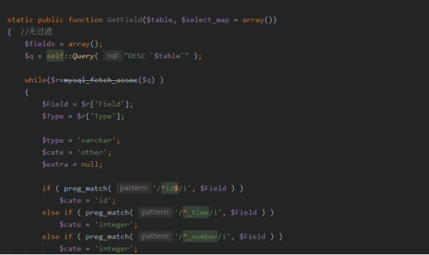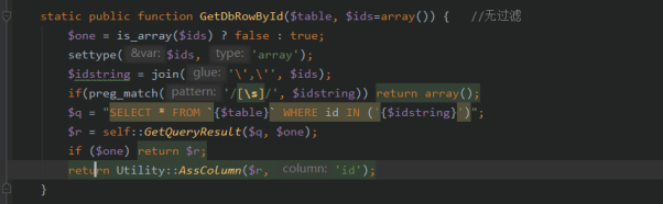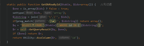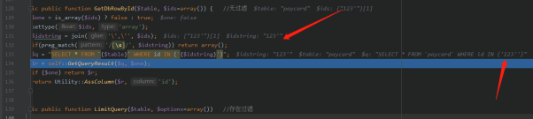 另外一处便是GetDbRowById调用,此处不存在过滤,可能存在注入,这个审计便放到下一部分: