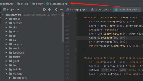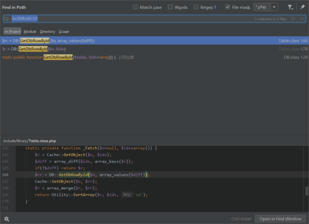 可以发现GetDbRowById函数在include/library/Table.class.php文件存在调用:_Fetch函数和FetchForce函数