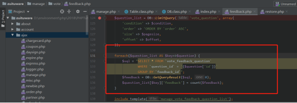 首先在本地搭建一个网站,方便之后测试,一键安装也没啥说的,跳过。重点讲讲这个团购CMS的SQL操作。这个团购CMS将SQL操作全部写到了include/library/DB.class.php文件: