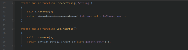 然后分析这个文件,发现这里面的函数有些使用了:mysql_real_escape_string函数对参数进行过滤,整数参数就强制转换int类型