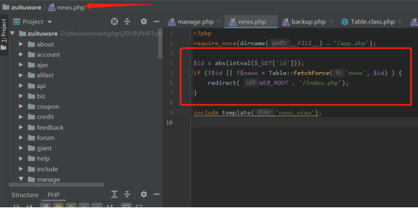 虽然调用了FetchForce函数,但是溯源之后发现对id变量进行了强制转换,因此属于不能利用的点。与此同时new.php也属于同理情况: